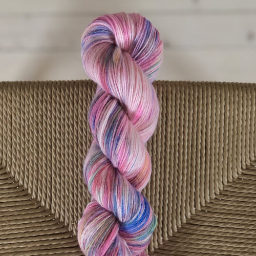 Håndfarget garn har alltid fascinert meg. Men jeg har kjent på at "det markedet sikkert er mettet". Etter hvert som jeg eksperimenterte og lekte med garnfargingen utviklet jeg min egen lille teknikk hvor jeg maler hvert enkelt hespe for hånd. Det slo meg at dette har jeg ikke sett noen gjøre tidligere. Det er temmelig tidkrevende å male garn på denne måten, og jeg følger aldri noen oppskrift. Noe av det jeg liker best med å farge, er at alt blir forskjellig. Dermed kan du kan være sikker på at det du lager, blir helt unikt. Det blir selvfølgelig ikke noe masseproduksjon av dette, derfor blir garnet ganske kostbart. Uansett gleder det meg stort at flere ser verdien i håndverk og kvalitet. Jeg håper at garnet får leve videre lenge etter at det har forlatt meg.