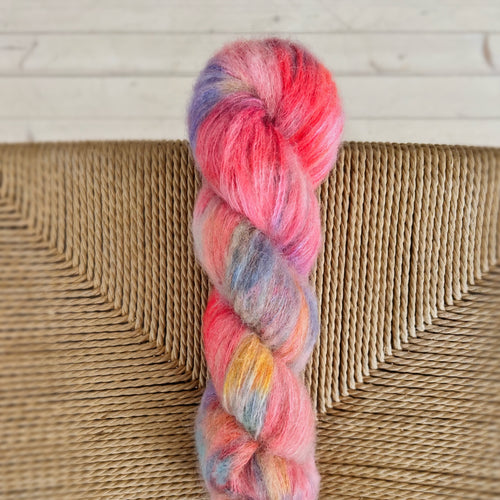 Håndfarget garn har alltid fascinert meg. Men jeg har kjent på at "det markedet sikkert er mettet". Etter hvert som jeg eksperimenterte og lekte med garnfargingen utviklet jeg min egen lille teknikk hvor jeg maler hvert enkelt hespe for hånd. Det slo meg at dette har jeg ikke sett noen gjøre tidligere. Det er temmelig tidkrevende å male garn på denne måten, og jeg følger aldri noen oppskrift. Noe av det jeg liker best med å farge, er at alt blir forskjellig. Dermed kan du kan være sikker på at det du lager, blir helt unikt. Det blir selvfølgelig ikke noe masseproduksjon av dette, derfor blir garnet ganske kostbart. Uansett gleder det meg stort at flere ser verdien i håndverk og kvalitet. Jeg håper at garnet får leve videre lenge etter at det har forlatt meg.