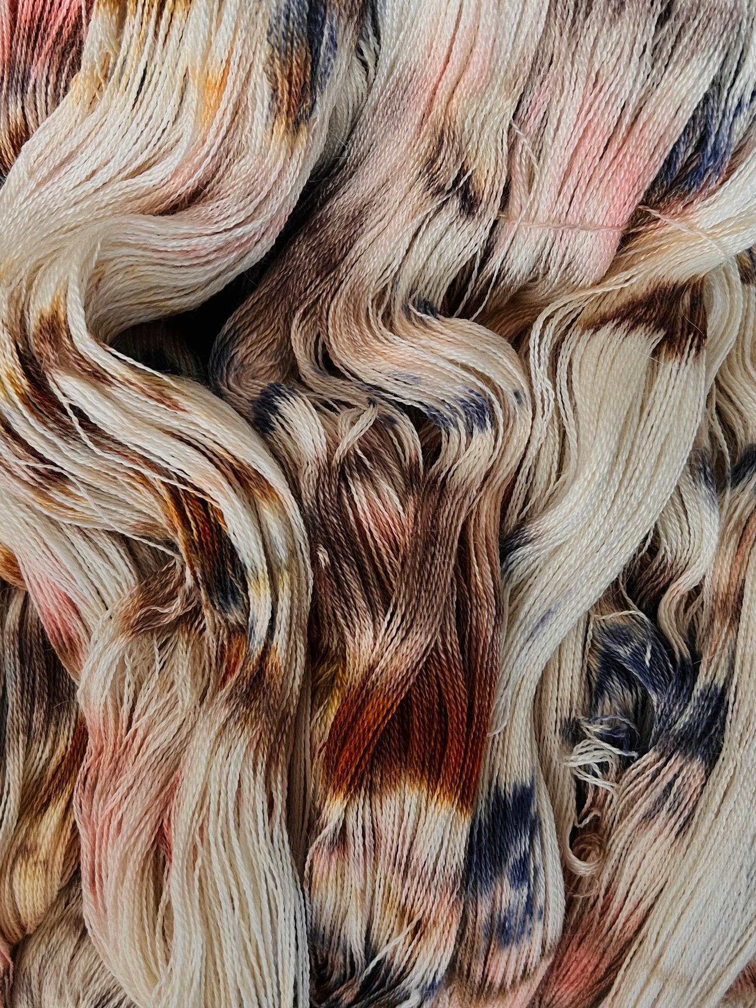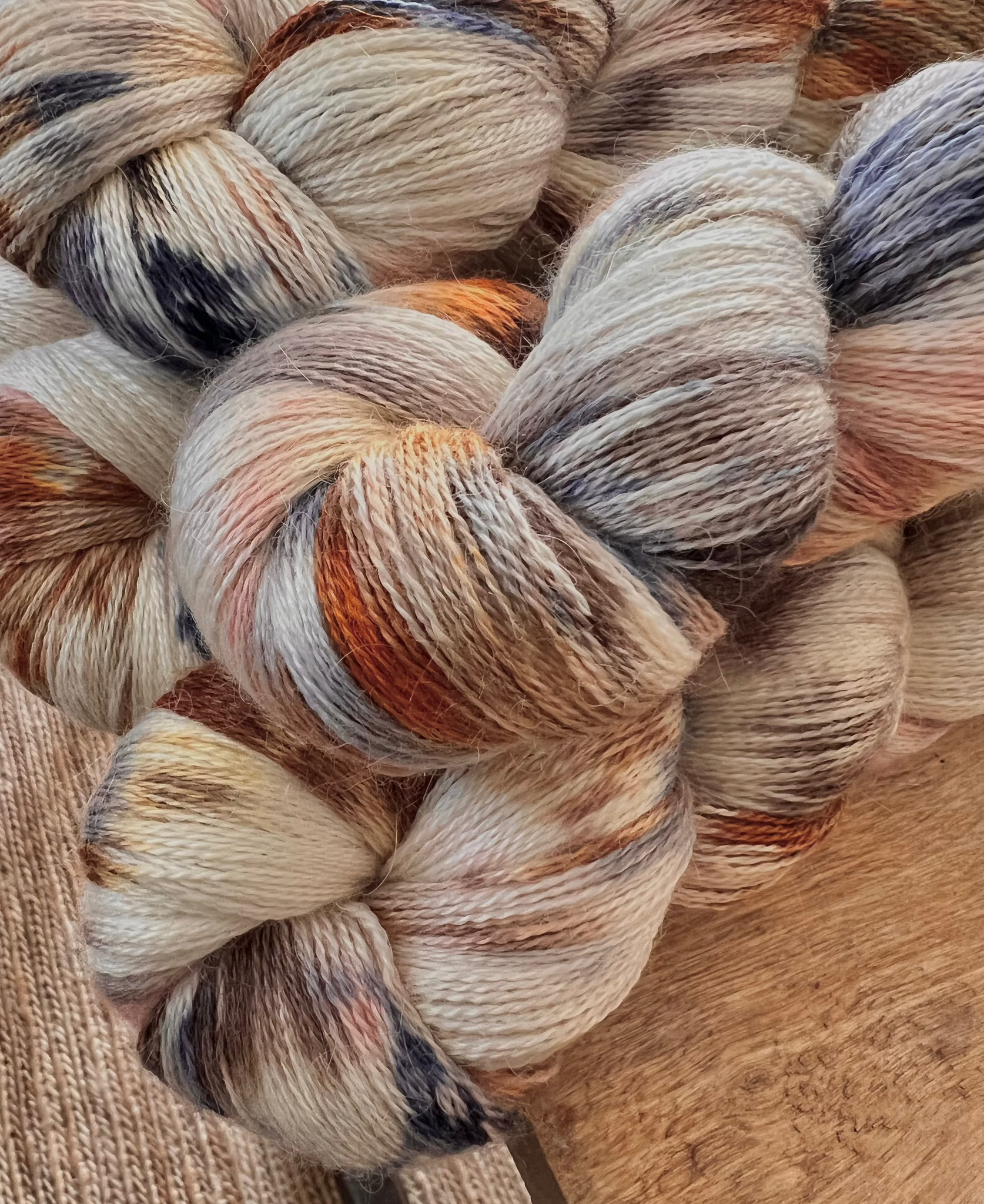 Bruk den som erstatning for tynn silk mohair om du strikker litt stramt, eller la den stå for fargespillet sammen med din favorittkvalitet. Denne er så tynn at jeg bruker den for fargespill i alt fra lette sommertopper til tykkere vinterstrikk. Et av mine soleklare favorittgarn. Trenger nesten ikke telles med i strikkefastheten så tynn er den. I et glattstrikket stort prosjekt har jeg massevis til en hel genser når den bare brukes som følgegarn, men husk at flettestrikk og strukturstrikk sluker betydelig mer garn enn glattstrikk. Anbefaler to hesper om du skal litt opp i størrelse og har mye struktur.
