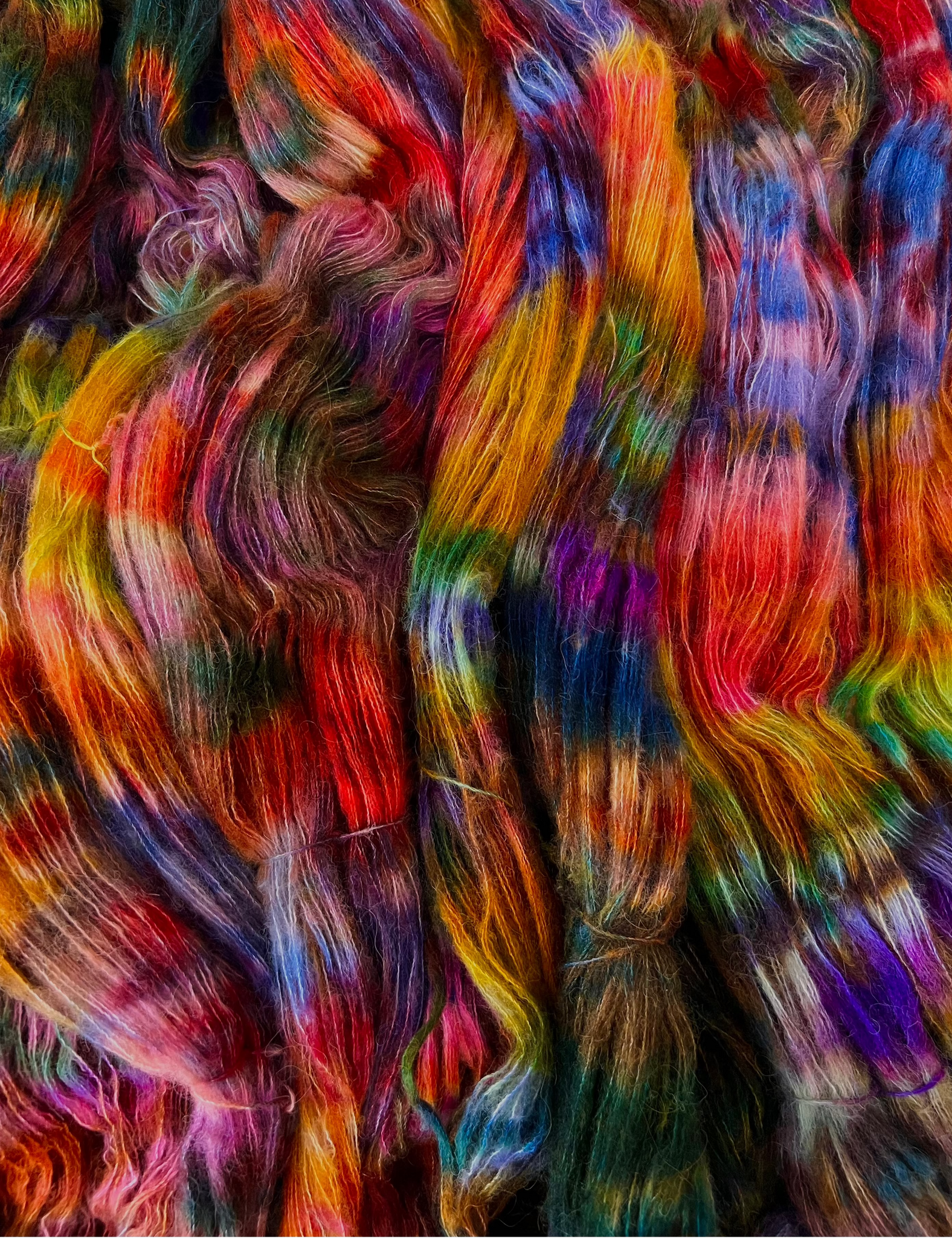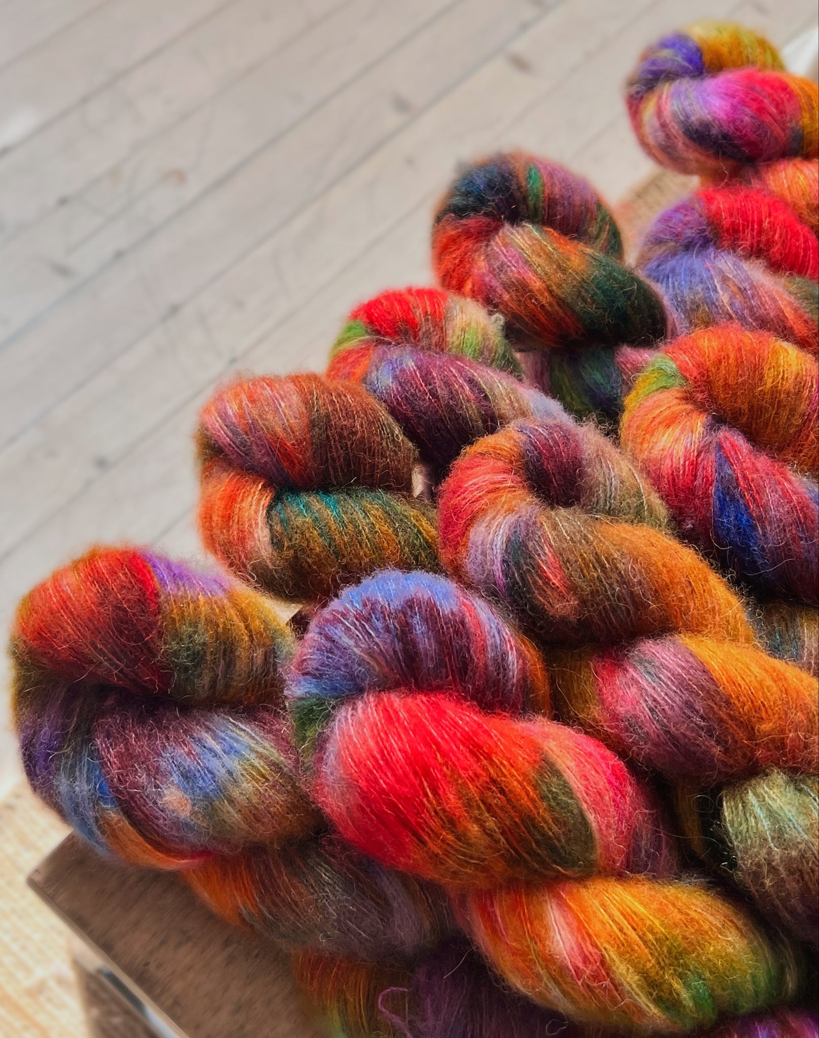 Det er STORE forskjeller mellom hespene. Noen har masse skarpe farger, mens noen er litt lysere. Om du ønsker noe som er jevnt og likt er dette IKKE garnet for deg🌈 OBS! Garnet bør alterneres om du ønsker et jevnt mønster. Jeg derimot elsker når det dukker opp tegninger og ujevnheter, velg hva som passer deg best🥰